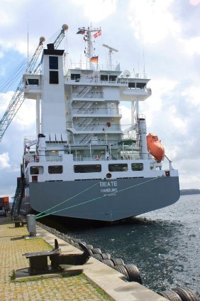 Gegen 14:00 Uhr waren wir wieder zurück am Hafen. Ein Kreuzfahrtschiff hatte angelegt und ich war glücklich, dass wir unsere Reise nicht mit diesem „Monster“ fortsetzen mussten. Der Zugangscode zum Containerhafen, den uns der Chief ausgehändigt hatte, funktionierte problemlos und wir gingen wieder an Bord „unserer“ BEATE.