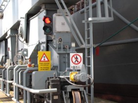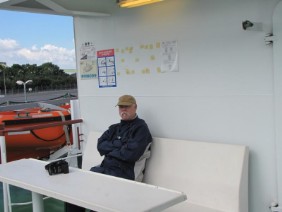 Die Lotsen kamen an Bord. Ich verbrachte wieder viel Zeit auf der Brücke, machte es mir auf der „roten Couch“, dem Besucherplatz für Passagiere bequem und genoss die Aussicht.