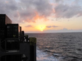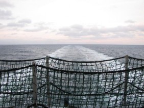 Mittwochmorgen war ich etwas gerädert – hatte kaum geschlafen. Das Be-und Entladen der Container und das Festzurren macht schon einen Heidenlärm – nachts kommt einem das Maschinengeräusch auch besonders laut vor.