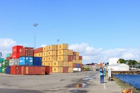 Donnerstag haben wir früh am Morgen bei strahlendem Sonnenschein Fredericia erreicht. Im Gegensatz zum Hamburger Hafen ging es hier fast schon beschaulich zu. Direkt nach dem Frühstück konnten wir „einfach so“ von Bord gehen und uns im Hafengelände zwischen den Containern frei bewegen.