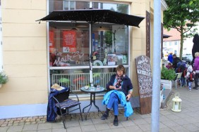 Wir sind zu Fuß vom Hafen in die Stadt gegangen. Schlenderten durch die hübschen Straßen und einen kleinen Regenguss nutzten wir als willkommene Kaffeepause.