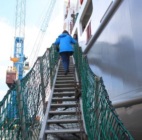 Der Hafen-Shuttle brachte uns zur Beate. Ich war sehr beeindruckt von der Größe des Schiffes.