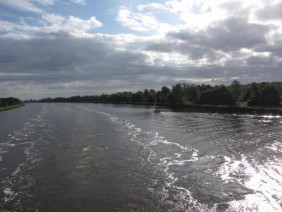 Die Fahrt durch den Nord- Ostseekanal habe ich sehr genossen und den ganzen Tag draußen an Deck verbracht – obwohl es immer wieder geregnet hat.