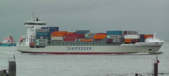 Auf der Elbe begann dann eine Schleichfahrt, anfangs noch 12, dann 8, schließlich nur noch 3 kn. Unser vorgesehener Liegeplatz am Burchardkai in HH wird nicht vor abends 22 Uhr frei. Habe dann mit dem Kapitän ausgemacht, dass ich noch bis zum Frühstück an Bord bleiben kann.