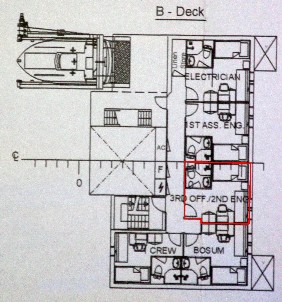 Wie erwartet trifft die CONMAR GULF um 01:00 Uhr in Hamburg am CTA ein. Gemeinsam mit Wolfgang Poddig gehe ich an Bord. Ohne große Begrüßung – die Besatzung hat schließlich was Wichtigeres zu tun - belegen wir unsere Kammern. Wolfgang zieht sich in seine auf dem B-Deck zurück, ich belege die recht große Owner’s Cabin auf dem C-Deck.