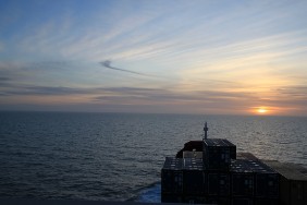 Der Tag beginnt vielversprechend mit einem spektakulären Sonnenaufgang und einem deftigen Frühstück (Spiegeleier mit Kartoffelpuffer). Dann beginnt die Crew mit Deckwaschen. Um 11:15 Uhr heißt es dann „Anker auf“, die Fahrt nach Antwerpen geht weiter. Beim Aufholen des Ankers tauchen leichte Probleme auf, da die Kette sich im Kettenkasten nicht sauber ablegt und durch die Crew manuell zurecht gerückt werden muss.