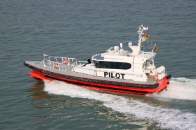Der Lotse des Lotsen-Mutterschiffs „POLARIS“ kommt mit einem Speedboot. Die Fahrt über die Westerschelde, dicht vorbei an den Stränden von Westkapelle und der von Hochhäusern geprägten Skyline von Vlissingen, bei traumhaften 19°C, ist ein Erlebnis. Bald darauf erfolgt ein erneuter Lotsenwechsel, jetzt mit einem futuristischen Lotsenboot.