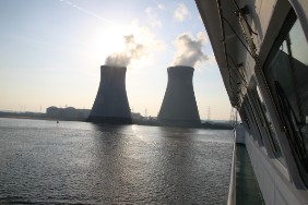 Mehrere Schiffe begegnen uns im recht engen Fahrwasser der Schelde, wie z.B. die OOCL Montreal und der fast 400 m lange Riese MERETE MAERSK. An Steuerbord bedroht uns das schon mehrfach negativ aufgefallene Kernkraftwerk „Doel“. Die riesigen Kühltürme waren schon von weitem zu sehen. Jetzt fahren wir direkt daran vorbei. Hoffentlich platzt das Ding jetzt nicht!