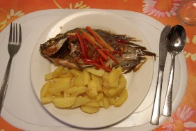 Am gegenüberliegenden PSA-Terminal werden die JAKARTA EXPRESS und die ELBFEEDER beladen. Pünktlich um 17:00 Uhr gibt es zum Dinner Tilapia, allerdings müssen wir alle mit den Gräten kämpfen, er schmeckt aber lecker. Im Deurganckdock am MPET-Terminal machen wir kurz darauf fest.