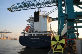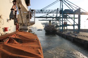 Ich nutze die Chance, ziehe meine gelbe Warnjacke an, setze den gelben Schutzhelm auf und mache von der Kaimauer aus ein paar Fotos unserer CONMAR GULF.