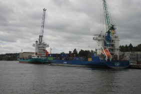 Um 09:00 Uhr läuft die ALREK (früher TRANS ALREK) ein auf ihrem Weg in den Mälarensee und macht hinter uns fest.