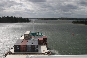 Jetzt beginnt wieder die traumhaft schöne Fahrt durch die Schären. Man muss sie erleben, kein Foto und kein Video kann das Erlebnis wiedergeben. Um kurz nach 16:00 Uhr verlässt uns der Lotse, und wir begeben uns auf den Weg nach Ahus. Da der Wind aus Richtung WSW auf Stärke 6-7 Beaufort aufgefrischt hatte und uns somit direkt entgegen kommt, entschließt sich der Kapitän dicht unter Land bis zur Nordspitze von Öland zu fahren, um das lästige Stampfen des nur gering beladenen Schiffes zu verringern. Gegen Abend lässt der Wind nach, es wird eine ruhige Nacht.