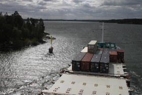 Wir begegnen in dem engen Fahrwasser den Großfähren CINDERELLA und BIRKA STOCKHOLM.