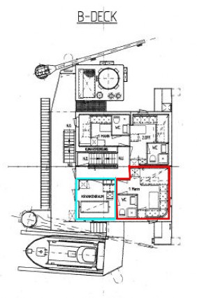 Während ich vom Chiefmate und vom Chief in der Offiziersmesse beim obligatorischen Morgen-Kaffee begrüßt werde, bringt ein Mitglied der Crew meine schwere Reisetasche in meine Kammer. Man hat mir die auch vom Reeder Jürgen Ohle bevorzugte Passagier-Doppelkammer auf dem B-Deck zugedacht. Ich bin überrascht, dass auch auf diesem doch recht kleinen Feederschiff eine derart geräumige und vor allem gemütliche Kammer vorhanden ist.