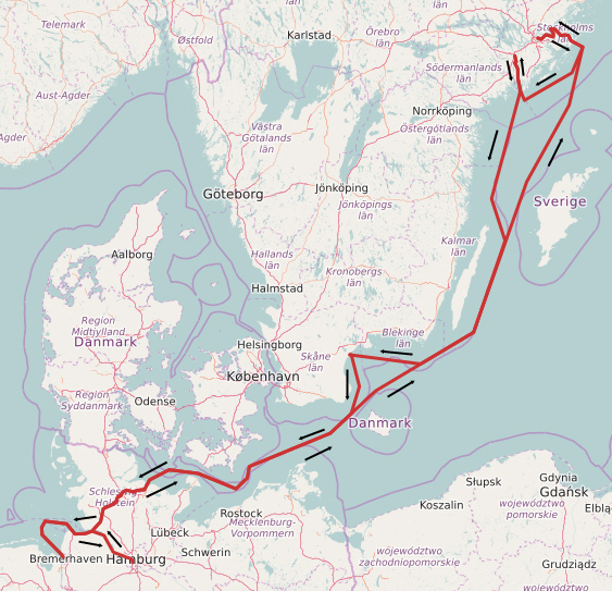Jürgen Ohle offerierte mir aber nun eine Kammer genau auf dieser Rundreise Hamburg – Stockholm – Södertälje – Ahus – Bremerhaven – Hamburg. Also wieder die gleiche alte Route. Wir wurden uns schnell einig, ich habe spontan zugesagt. Am 06.08.2016 sollte es in Hamburg losgehen. Sofort wurde bei Marinetraffic die „Verfolgung“ des Schiffes aufgenommen. Am 04.08.2016 teilte mir der Kapitän der DORNBUSCH telefonisch die voraussichtlichen Ankunftsdaten in Hamburg mit.
