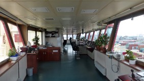 Um 11.00 Uhr wurde die Hauptmaschine angelassen und die Frederik verholte zum CT Tollerort. Zu diesem Zeitpunkt hatte ich die Aushänge in meiner Kabine noch nicht gelesen und wollte, wie ich es von meinen früheren Reisen her kannte, das Manöver von der Brücke aus beobachten. Ich habe angeklopft und höflich gefragt, ob ich eintreten darf, wurde aber mehr oder weniger rustikal von der Brücke verwiesen. Der 1.Offizier - aktueller Wachhabender - hätte mir nach meinem Gefühl sicherlich die Erlaubnis zum Betreten der Brücke gegeben, wurde aber vom Kapitän zurückgehalten.