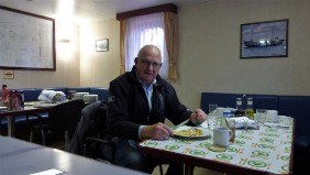 Ich war beim Pförtner am Eurokai angemeldet und ein Shuttle Bus brachte mich zur Frederik. Dort traf ich auf den 3. Offizier Rana Archimedes, der mein Gepäck auf meine Kammer brachte. Nach dem Auspacken ging ich zur Messe und traf dort meine Mitpassagiere - ein Ehepaar aus der Nähe von Flensburg.