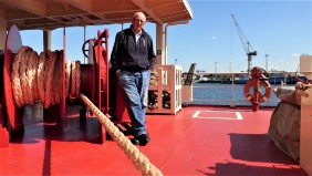 Nach einem kräftigen Frühstück mit Spiegeleiern und Speck bin ich an Deck und habe die Revierfahrt auf der Elbe genossen. Nach anfänglichem Frühdunst wurde es ein schöner sonniger Tag.