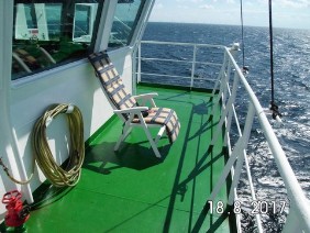 Ich musste nur räumen, wenn die Crew mit Wasserschlauch und Schrubber anrückte, um „rein Schiff“ zu machen. Jeden Tag. Die HANNI blitzte und blinkte. Von der Maschine bis zum Peildeck. Genannt: Monkey Island. Warum, weiß ich auch nicht.