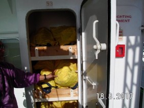 Der „Second“ - das ist der 2. Steuermann - machte dann mit mir die Sicherheits-Einweisung und ließ die sich quittieren. Eine Unterschrift genügte. Auf der CONMAR GULF waren es 16. Jeder Punkt einzeln abgezeichnet. Russisch eben...