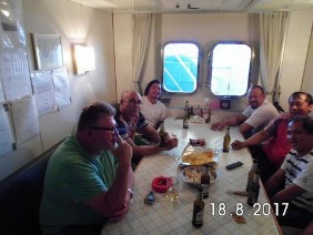 Beim Frühstück kommen dann weitere Fragen: Gut geschlafen? Alles in Ordnung mit der Kammer? Der übliche small-talk. Man lernt den Rest der Besatzung kennen.