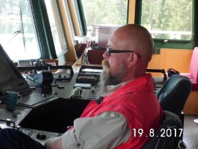 Das war wieder dieser „Wikinger“ den ich schon auf ALREK oder FREJ fotografiert habe. Damals hat der uns durch den Mälarensee nach Västeras kutschiert. Sein Zopf im Bart ging jetzt schon bis auf die Brust.