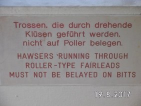 Was aber tatsächlich an Bord gesprochen wird, hat mit „normalem“ Englisch nicht mehr viel zu tun. Da hat sich eine ganz eigene Sprache entwickelt. So eine Art lingua franca aus Resten von Schul-Englisch, Philippin-Pidgin, und in der Seefahrt üblichen und gebräuchlichen Redewendungen, Bezeichnungen und Befehlen.