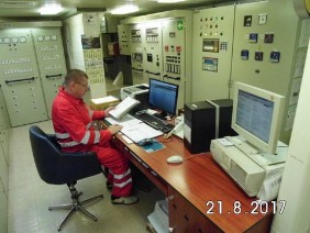 Als ich mich dazu gesellte, bezog er mich in seine Überlegungen mit ein. Es ging um Gefahrgut, das nicht irgendwo stehen darf, nur an vorbestimmtem Plätzen, und um die Biegemomente (Bending) des Schiffes. Zeigte mir Kurven und Grafiken.