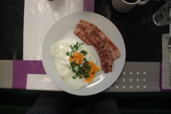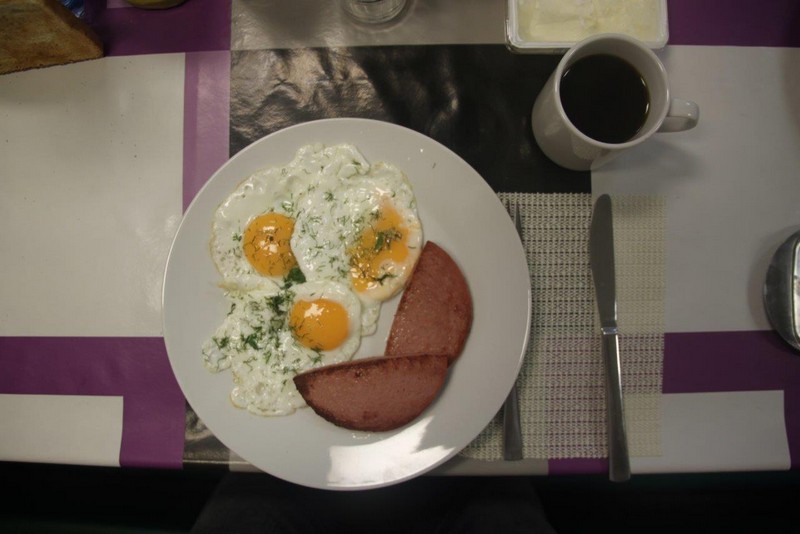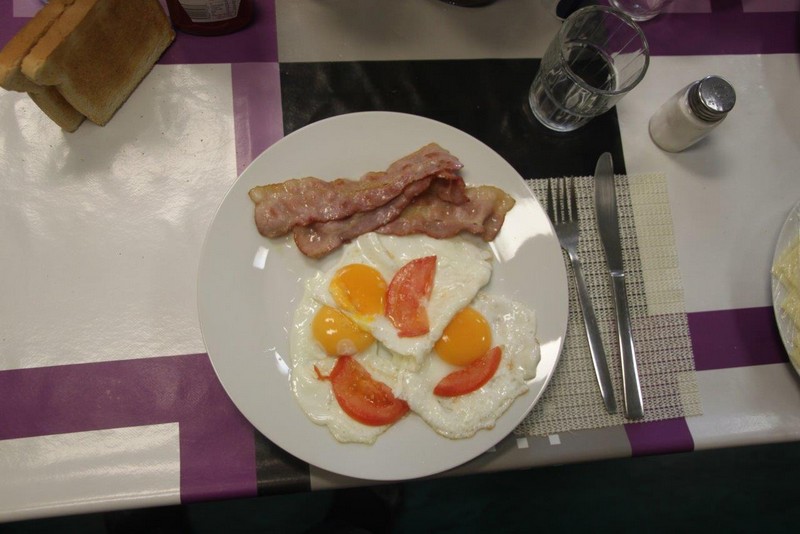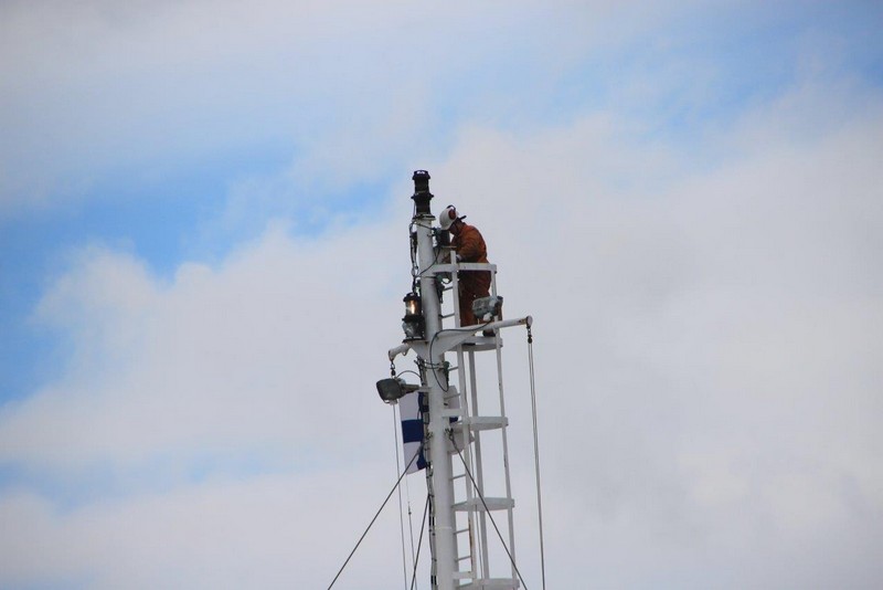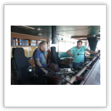 Beim Frühstück –es gibt Eier „sunny side up“ mit gebratenem Speck– treffe ich zum ersten Mal die 19 jährige NOA (Nautische-Offiziersassistentin). Auch haben wir die Gelegenheit, dem Kapitän und dem Bootsmann (Bosun) zum heutigen Geburtstag zu gratulieren.
