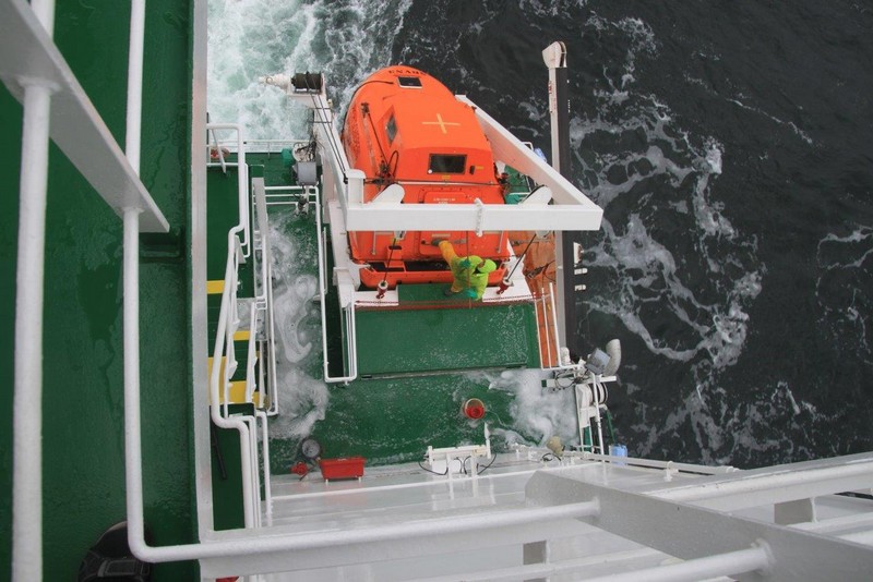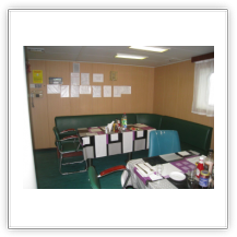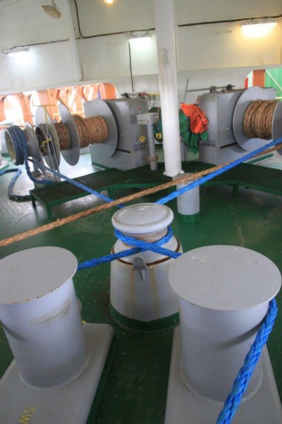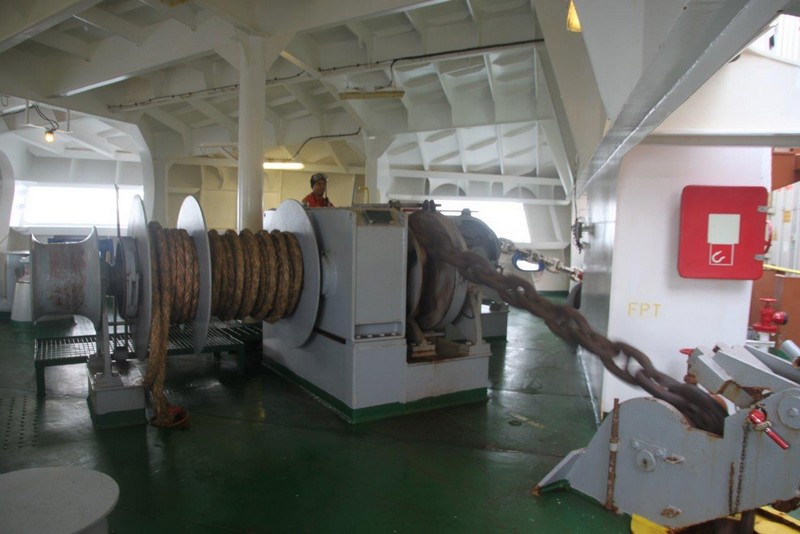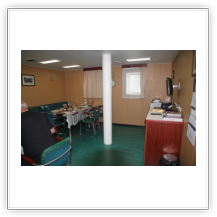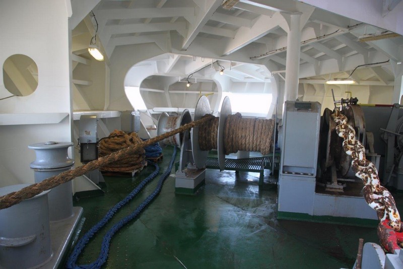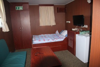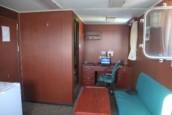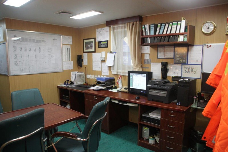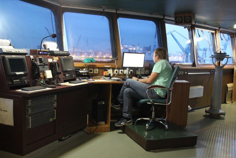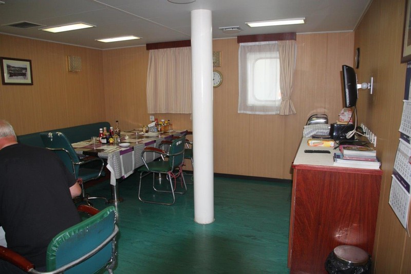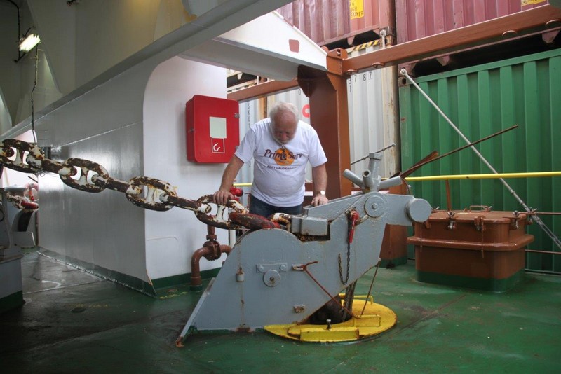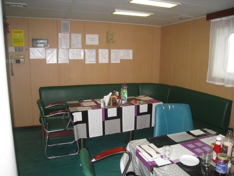 Auf der KATHARINA SCHEPERS hatte ich die kleinere Kammer Steuerbord-achtern, jetzt kann ich die wesentlich größere Kammer Steuerbord-vorn beziehen. Als erstes klopfe ich aber an Wolfgangs Kammertür und blicke in ein erstauntes Gesicht. Die Besatzung hatte tatsächlich nicht verraten, dass ich nun doch mitfahre. Beim 2. Offizier gebe ich meinen Pass ab, erfahre bei der Sicherheitseinweisung nichts wirklich Neues und richte mich in meiner Kammer häuslich ein.