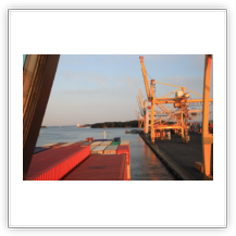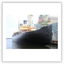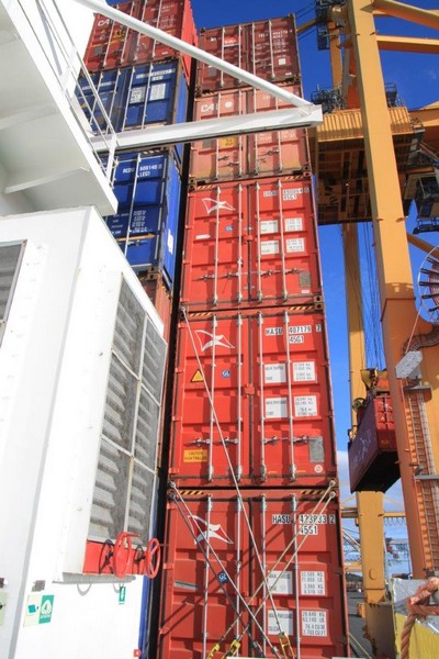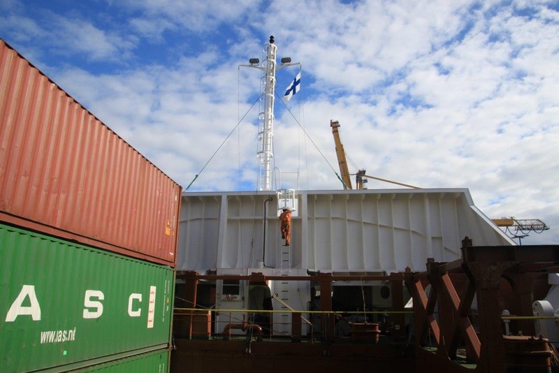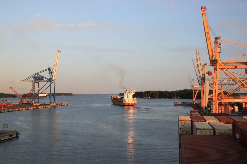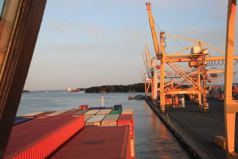 Ich bewaffne mich mit gelber Warnweste und Fotoapparat und streife entlang der Kaimauer und schieße noch ein paar Fotos. Die Containerverladung zieht sich hin. Nicht um 16:00 sondern erst um 19:00 können wir auslaufen. Das hätte gut für einen ausgedehnten Helsinkibesuch gereicht. Gern hätte ich mir die alte Markthalle, die Temppeliaukio-Kirche (Felsenkirche) und einiges andere angesehen. Bei einer Frachtschiffreise ist das aber leider nicht im Detail planbar.