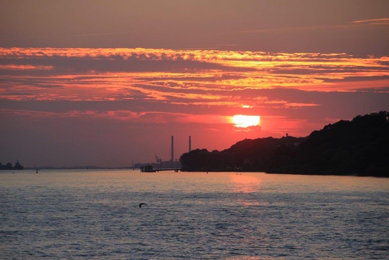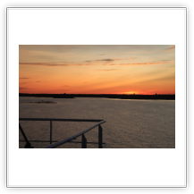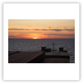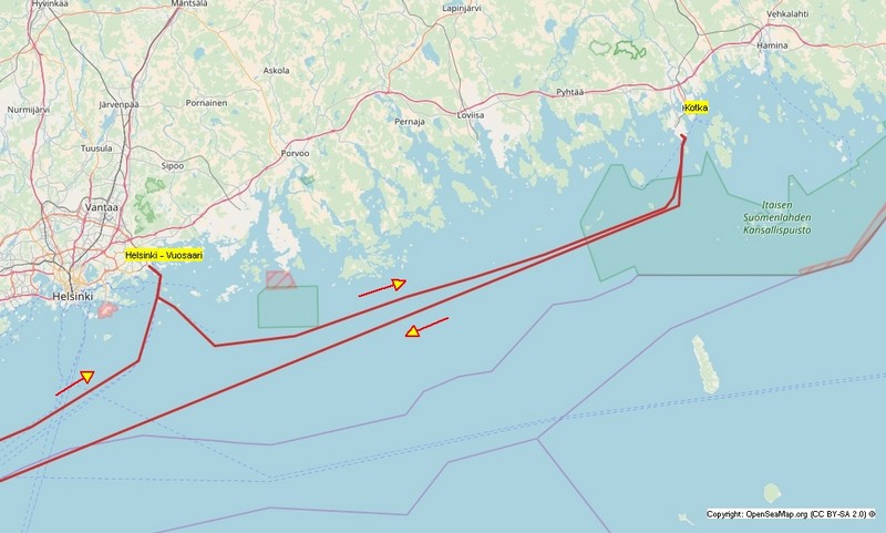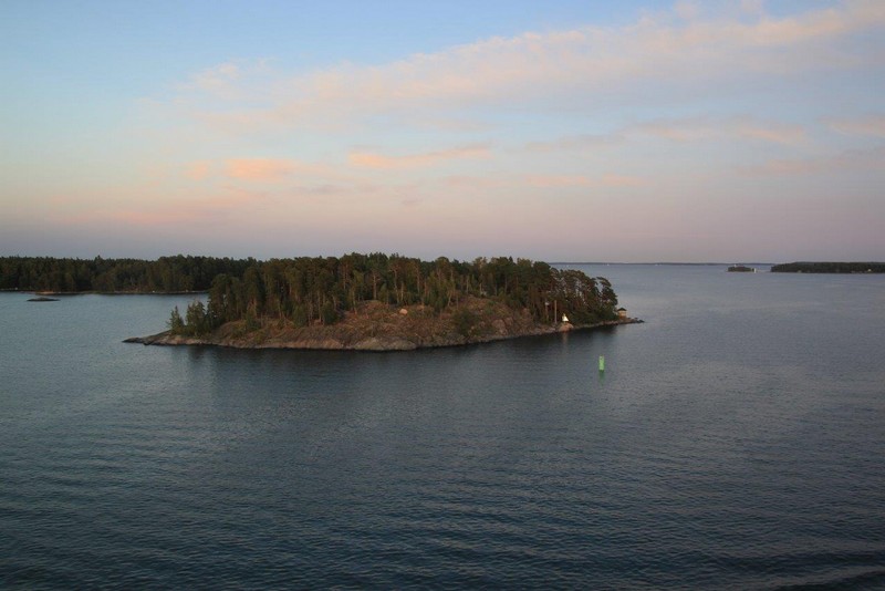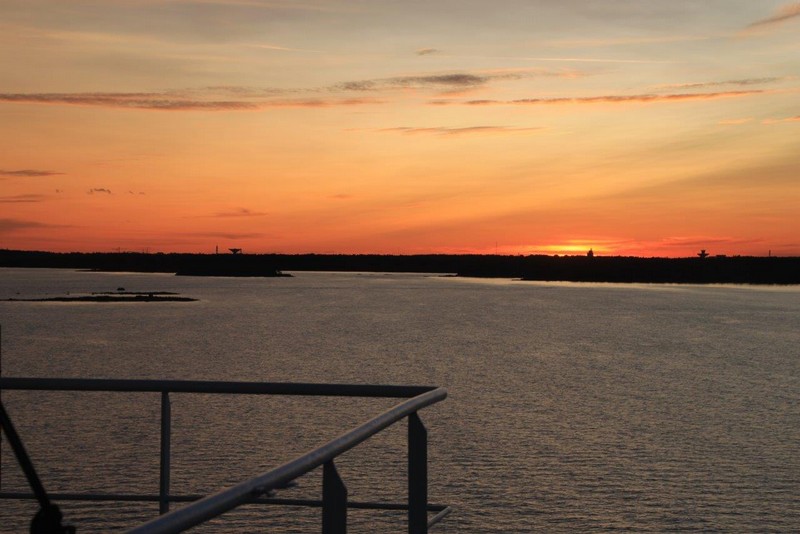 Wir haben von Hamburg 7.800 ts Ladung mitgebracht, viel davon hier in Vuosaari entladen und einiges wieder neu geladen. Mit 7.500 ts machen wir uns auf den Weg nach Kotka. In der untergehenden Sonne –in Finnland ist es schon 20:00– fahren wir durch die Inselwelt. Im Zick-Zack vorbei an Inseln, die teilweise nur kleinen Steinhaufen gleichen, souverän vom Kapitän und Lotsen gesteuert. Wer hier nicht aufpasst, hat bzw. ist verloren. Der Himmel über Helsinki verfärbt sich glutrot, ein Farbenschauspiel wie es im Buche steht und so vermutlich nur auf See genossen werden kann. Im Laufe der Nacht reißt die Wolkendecke auf, zuvor kommt ein sternenklarer Himmel. Eine derartige Vielfalt an Sternen sieht man selten.