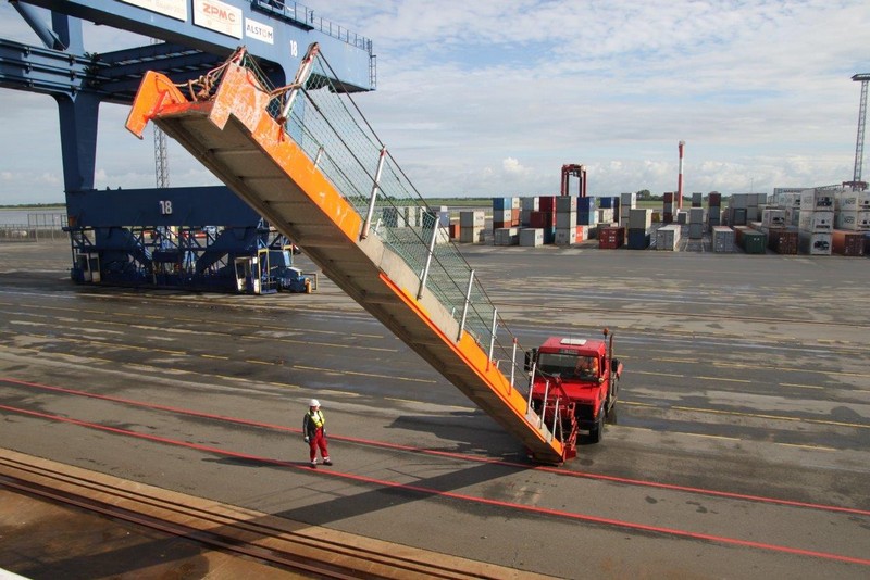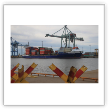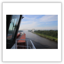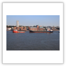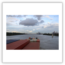 Kaum bin ich im Norden Hamburgs auf der Autobahn und schon steht der Verkehr. Kurz darauf folgt im Verkehrsfunk die Meldung, dass sich am Elbtunnel ein Unfall ereignet hat und sich ein 16 km langer Stau gebildet hat. Nur extrem langsam geht es voran, nach 2 ½ Stunden endlich komme ich am Gate des CTB an. Die schon bekannten Formalitäten sind schnell erledigt, neu ist ein notwendiger Anruf beim Schiff, um mein Erscheinen anzukündigen. Der Shuttle-Bus setzt mich an der Gangway ab – die HEINRICH SCHEPERS liegt am Athabaska-Kai, der Stromkaje unmittelbar an der Elbe –, der Wachmann bringt mein Gepäck in meine Kammer.