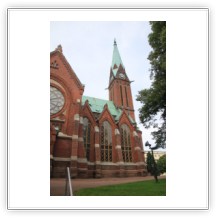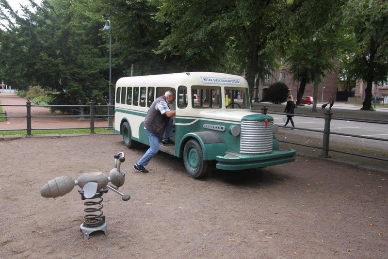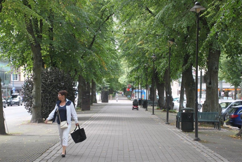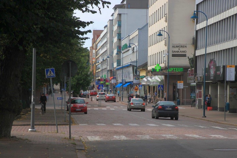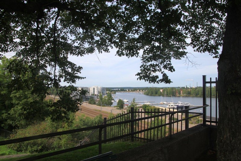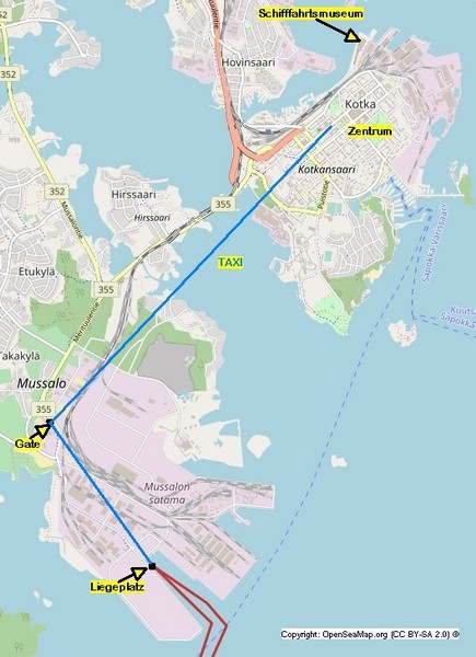 Als ich um kurz nach 07:00 aufwache, liegen wir schon lange fest in Kotka. Es herrscht eine herrliche Ruhe. Auch der Hafen schläft noch. Erst kurz nach 08:00 fangen eine Containerbrücke und mehrere Vancarrier –das sind die einer Giraffe ähnlichen Containertransportfahrzeuge– an zu arbeiten und entladen einen Teil der mitgebrachten Container. Nach dem Frühstück bestellt uns ein hilfsbereiter Stauereimitarbeiter ein Taxi, um Kotka zu erkunden. Das Taxi holt uns direkt am Schiff ab und bringt uns für 20,- € bis ins Zentrum der ostfinnischen Hafenstadt.