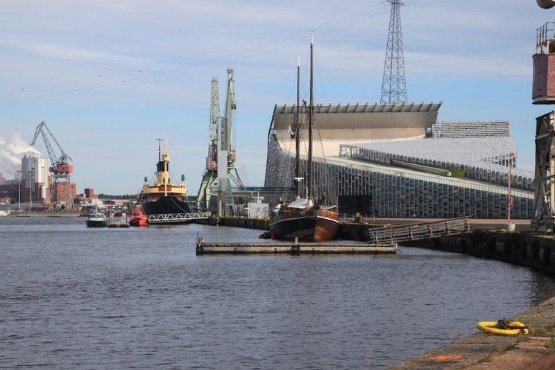 Schon um 05:00 sind wir im Hafen von Vuosaari, dem neuen Frachtschiffhafen von Helsinki fest. Von der Einfahrt und den kleinen vorgelagerten Inseln habe ich nichts mitbekommen. Als dann um 07:00 die Entladearbeiten beginnen, werde ich unsanft geweckt. Direkt vor meinem Fenster werden die ersten Container mit kräftigem Getöse bewegt. Nach dem Frühstück steht die erste Entscheidung für den Tag an: An Bord bleiben oder nach Helsinki fahren? Draußen wechseln sich tief hängende schwarze Wolken, leichter Sprühregen und blauer Himmel ab. Es weht ein ungemütlicher Wind.