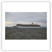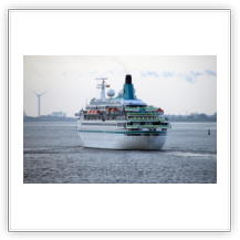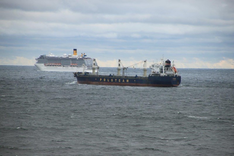 Es regnet immer noch. Die Wellen –obwohl weitaus niedriger als gestern– rollen jetzt von der Seite an und versetzen dem Schiff immer mal wieder einen Schlag, so dass es sich etwas schüttelt. Das ist weit unangenehmer als das Rollen. Wir fahren nach wie vor nur mit 15 kn Richtung Kiel. Die COSTA MEDITERRANEA auf Ihrem Weg nach Kopenhagen überholt uns an der Nordspitze von Bornholm. Wir nähern uns der Kadetrinne, der engsten Stelle des Fahrwassers zwischen Dänemark und Deutschland. Vom Agenten der Reederei erhalten wir die Nachricht, dass unser Liegeplatz in Bremerhaven am Dienstag und Mittwoch besetzt sein wird und wir erst am Mittwochabend dort anlegen können.