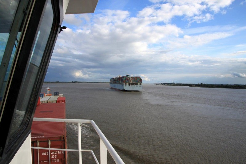 Die Abfahrtszeit Richtung Bremerhaven wird mehrfach verschoben, um 21:30 heißt es dann „Anker auf“. Gemeinsam mit der CONMAR ELBE laufen wir in die Weser ein.