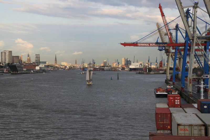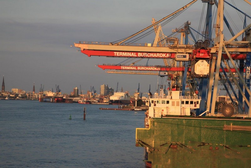 Mit dem Chiefmate habe ich mich abgestimmt, um 15:00 will ich an Bord sein. Da das Wetter wider Erwarten ausgesprochen gut ist, setze ich mich schon um 13:00 ins Auto um nach –erfahrungsgemäß– 40 Minuten am CTB (Container-Terminal-Burchardkai) zu sein.