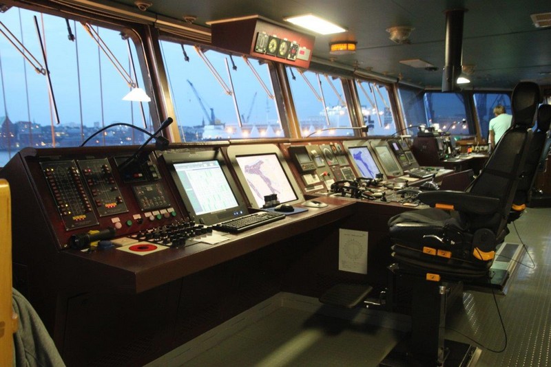 Trotz der Verzögerung durch den Schaden an der Containerbrücke wird man rechtzeitig fertig, und wir können wie geplant um 22:30 die Leinen los werfen und mit 7.800 ts Ladung und 8,10 m Tiefgang Richtung Finnland fahren. Doch vorher geht es noch ein paar Stunden über die Elbe bis Brunsbüttel, und dann kommt noch der Nord-Ostsee-Kanal.