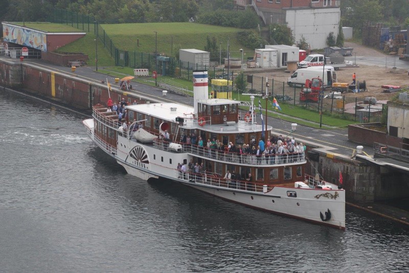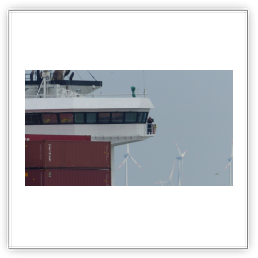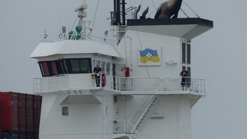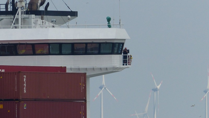 Der Eckhard Reeh hat Euch aber gut gesehen. Beide außen auf der Brücke und mit Video oder Kamera beschäftigt. Also ein paar Bilder von der Vorbeifahrt nebenan.