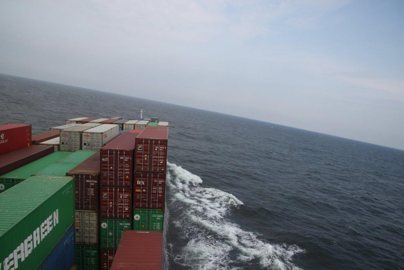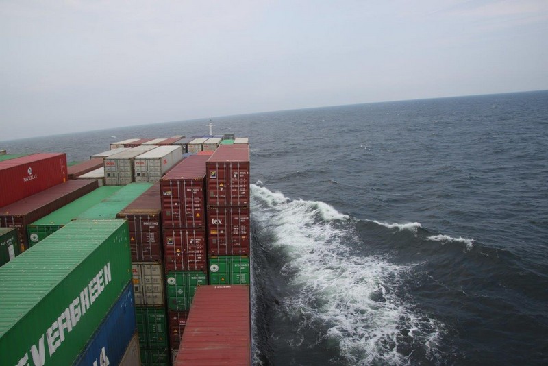 Auf den Containern befördern wir einen kleinen Vogel als „blinden Passagier“. Ansonsten herrscht an Bord allgemeine „Seetagsroutine“. Zum Dinner serviert der Cookie eine gut belegte, selbst gebackene Pizza, als Dessert eine große Portion Eis. Im Laufe des Nachmittags lässt der Wind nach, dafür setzt jetzt Regen ein. Das Rollen wird weniger, es folgt eine ruhige Nacht.