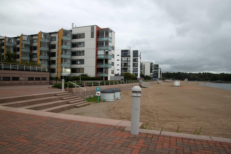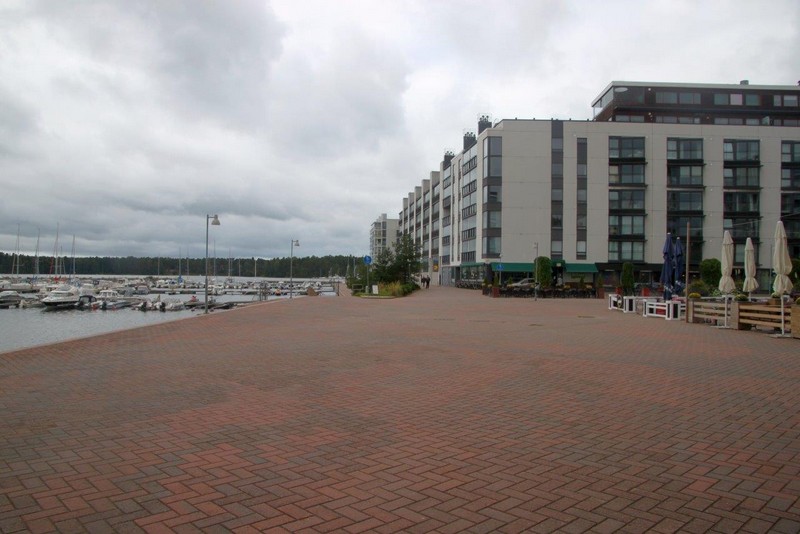 Vuosaari überrascht uns mit moderner Architektur. Industrieansiedlungen finden wir kaum, eine Ausnahme scheint der Hafen zu sein. Ansonsten erweckt der Ort eher den Anschein einer Schlafstadt, obwohl es ein Stadtteil von Helsinki ist. Wir bummeln durch den Ort, kaufen ein paar Kleinigkeiten im Shoppingcenter –nur ein paar kg, Wolfgang liebt finnischen Käse– sehen uns an der Marina und am menschenleeren Strand um. Als es etwas zu regnen beginnt, setzen wir uns wieder in den Bus und fahren zurück zum Hafen. Am Hansaterminal steht auch ein Shuttlebus bereit, wir kommen ohne jegliche Verzögerung wieder zum Schiff.