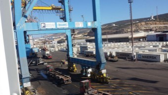 Von den hohen Kranbrücken aus könnte man jetzt nicht laden, weil man aus 50m Höhe nicht erkennen kann, wo die Container abgegriffen oder eingepasst werden müssen. Das ist zum Glück schon gestern Abend abgeschlossen worden.