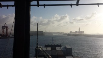 LOUIS C. sollte zuerst Einfahrt haben, HENNEKE Nr. Two. Alles klar. Dann ist die LOUIS C. noch nicht parat, warum auch immer. Der Lotse verkündet: HENNEKE soll losfahren, full power. Captain fragt noch mal nach: sind wir jetzt Nr. One? Confirmed.