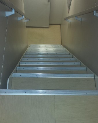 Horror ist das Treppensteigen: in dem geschlossenen Treppenhaus wird man mal zur einen, mal zur anderen Seite gekippt. Das Hochsteigen ist mal richtig anstrengend, dann wieder schwebt man plötzlich mit Leichtigkeit ein paar Stufen nach oben – halt je nachdem, ob das Schiff vorn steigt oder fällt, was man aber nicht sehen kann. Zum Festhalten mit zwei Händen gibt es das Geländer an beiden Seiten. Wieder mal bewährt sich ein Baumwollbeutel an der Schulter, in dem ich alles verstaut habe, was ich bei mir tragen will.