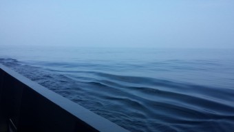Wecken: pünktlich um 05:45 wird der Motor angeworfen. Blick nach draußen: man kann nicht mal das Wasser sehen!