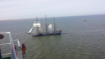 Noch ein Highlight: Wir begegnen einem alten Segelschiff, THOR HEYERDAHL. Überaus eindrucksvoll. Für uns Passagiere – für Cpt Drewes sind weiße Segel ein rotes Tuch! Ein schönes Bild.