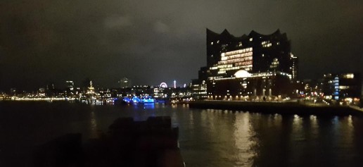 Schon die Ausfahrt mit Blick auf das erleuchtete Panorama mit Elbphilharmonie und Hamburger Dom ist ein richtiges Erlebnis. Ebenso die Fahrt über die nächtliche Elbe, die vielen verschiedenen beleuchteten Schiffe, wunderschön.