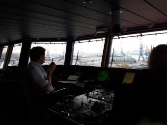 Bei der Gelegenheit (bzw. danach, natürlich) lasse ich mir mal die Rechtslage erklären: Die Lotsen sind nur "Berater", die Verantwortung bleibt beim Kapitän - auch wenn dieser sich überreden lassen würde das Steuer abzugeben. (Da sind sie bei Cpt Drewes allerdings am Richtigen!)