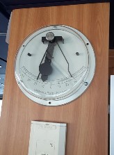 Heute lerne ich die Funktion des Neigungsmessers kennen, der die Krängung des Schiffes anzeigt. Der bewegliche Zeiger gibt die aktuelle Neigung an, zwei kleine Metallzeiger markieren die jeweils weitesten Ausschläge. Bei 10° hält man sich besser schon fest, zumal die Neigung ja nicht konstant ist, sondern das Schiff hin- und herschwankt und auch das nicht immer gleichmäßig. Heute hatten wir eine Schräglage bis 30°! Fotos/Videos mache ich vom Lotsensitz aus, weil ich hier beide Hände frei habe. Glaube ich. Das Schiff neigt sich aber so schräg, dass ich seitlich vom Sitz rutsche. Fast – zum Glück war die Seitenlehne hochgeklappt!